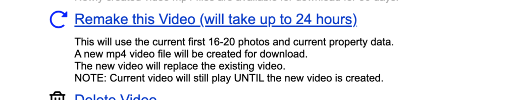 5. Click ‘Remake this Video (will take up to 24 hours)’.