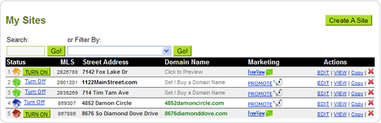 2. In the MANAGE SITES page – make a COPY of your Single Property Site by clicking on the COPY button next to your site.